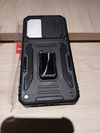 Funda protectora para teléfono móvil con un diseño robusto y funcional. - Acabado en color negro. - Incorpora un anillo trasero para un agarre seguro. - Diseño con tapa deslizante para la cámara.