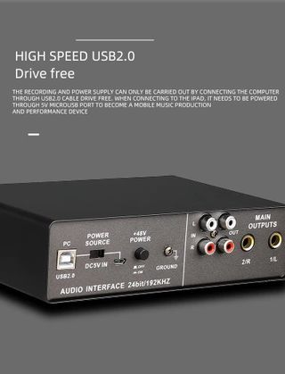 Tarjeta de sonido profesional 2 en 4, nueva interface de adio con monitoreo de guitarra, grabación en vivo. Preamplificadores de micrófono con interfaz de Audio USB 2x2 con 24 Bit/192 Khz, compatible con micrófono, guitarra, bajo, ordenadores y otros equipos de grabación. Descripción: Entrada MIC 1-2 (equilibrada): Respuesta de frecuencia: -1 / -1 dB, 20Hz - 20 kHz Rango dinámico: 82 dB, una ponderación THD + N 0,03%, 1 kHz Nivel máximo de entrada: + 6 dBu resistencia de entrada 4 kΩ Rango de ganancia: + 3 dB- + 60dB Entrada de HI-Z 2 (no equilibrada) Nivel máximo de entrada: + 3,0 dBV Resistencia de entrada: 1 MΩ Rango de ganancia: