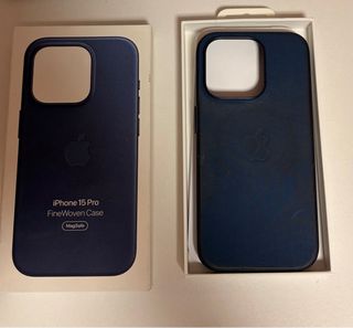Funda de tejido FineWoven para iPhone 15 Pro en color azul. - Compatible con MagSafe. - Diseño elegante y ajuste perfecto.