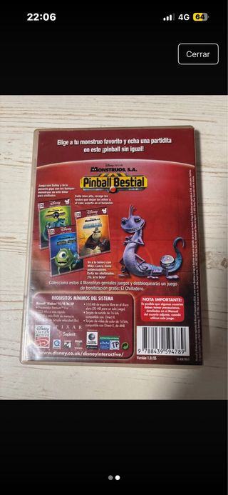 Juego de PC Monstruos S.A. Pinball Bestial de Disney Pixar. - Formato: PC CD-ROM. - Edad recomendada: 6+ años. - Incluye 4 mini-juegos para desbloquear un juego secreto.