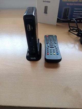 Mini TDT grabador con puerto USB y ranura SD. Perfecto para cualquier TV con Euroconector, sin TDT digital. - Diseño compacto y moderno. - Indicadores LED de encendido y bloqueo. - Puerto IR para receptor externo. Incluido mando a distancia SIN PILAS. - Receptor DVB-T para TV y radio. - Función de grabación en USB, reproductor multimedia. - Soporta archivos en formato MP3, DVD, VCD, MPEG, AVI, JPEG EPG. - Guía de programación electrónica, teletexto, búsqueda automática y manual - Multi-lenguaje, USB 2.0, entrada SD, salida Scart (euro conector). Manual incluido. Tambien en mano, Guadalajara y alrededores