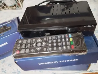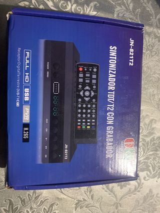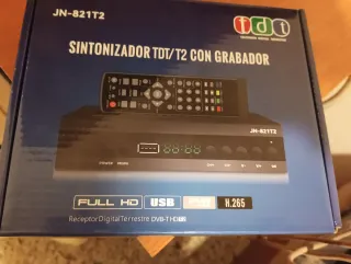 Sintonizador TDT/T2 con función de grabación. - Modelo: JN-821T2 - Compatible con Full HD, USB y H.265. - Incluye mando a distancia. Nuevo en su caja solo probado cu correcto funcionamiento.