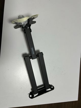 Soporte metálico negro para televisores o monitores. - Compatible con pantallas de 13 a 27 pulgadas. - Incluye tornillería y accesorios de montaje. - Soporta hasta 20kg de peso. - Distancia a pared 15mm.