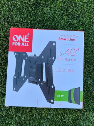 Soporte de pared universal para televisores. - Compatible con pantallas de 13 a 40 pulgadas (33-102 cm). - Soporta hasta 50 kg. - Diseño plano. endo soporte de pared universal ONE FOR ALL Smart Line, modelo plano (WM2211) para televisores de 13” a 40” (33-102 cm) y hasta 50 kg de peso. El producto está completamente nuevo y sin abrir, ideal para montar tu TV LED, LCD o plasma de manera segura y sencilla en la pared. Características principales: Compatible con televisores de 13” a 40” (33-102 cm). Soporta hasta 50 kg (110 lbs). Diseño extra plano (distancia de la pared: solo 14 mm). Incluye todos los materiales de montaje. Fá