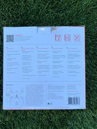 Soporte de pared universal para televisores. - Compatible con pantallas OLED, QLED y LED. - Tamaño de TV: 13-43 pulgadas (33-109 cm). - Inclinación de 15°. - Distancia a la pared: 39 mm. - Peso máximo soportado: 60 kg (110 lbs). - Compatible con VESA hasta 200x200 mm.