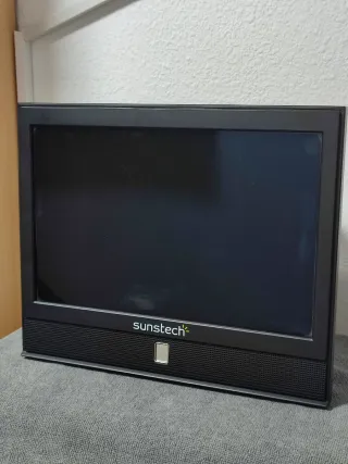 Televisor portátil de la marca Sunstech. Su diseño compacto lo hace ideal para llevar a cualquier parte. - Pantalla de alta definición. - Altavoces integrados. - 13,3 pulgadas - Puertos de antena, USB, HDMI, etc - Mando y cable de alimentación - Reproduce DVD y discos duros/pendrive