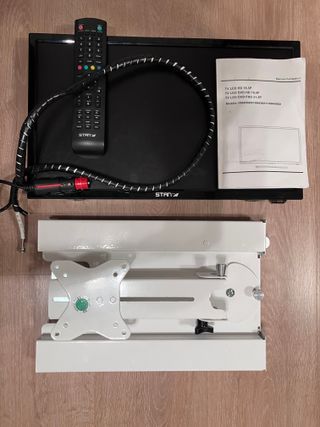 Televisor LED STAN de 18.5 pulgadas, ideal para autocaravanas. Incluye mando a distancia y manual. - Pantalla HD. - Modelo: 150331994158430. - Soporte de pared ajustable incluido.