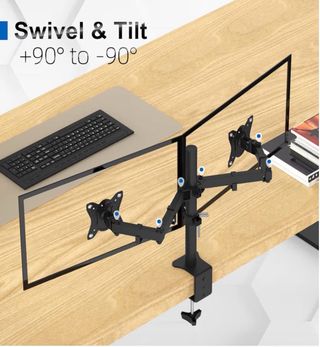 GRIFEMA GB2001-2 Soporte de Monitor Doble para Pantalla de Computadora de 13-32 Pulgadas, Altura Ajustable, VESA 75x75/100x100, Acero, Negro Le faltan algunos tornillos de los que van al monitor pero sin netricos standard . Soporte para dos monitores con brazo articulado. - Ajuste de giro e inclinación de +90° a -90°. - Base con pinza para escritorio.