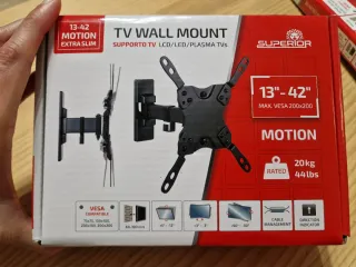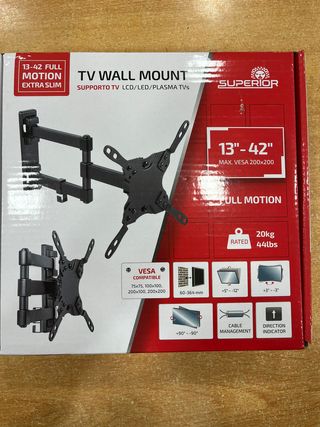 Soporte de pared para TV de 13 a 42 pulgadas. Tengo 2 unidades. Múltiples posiciones. Giros laterales e inclinación. - Movimiento extra slim. - Compatible con VESA 75x75, 100x100, 200x100, 200x200. - Soporta hasta 20 kg (44 lbs). - Gestión de cables integrada. - Indicador de dirección.