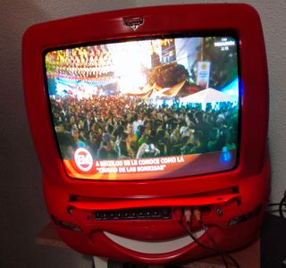 Televisor crt,13 pulgadas, Mcqueen Disney Pixar Cars, TV, DVD Combo,el dvd funciona pero no lee el disco.la tele funciona perfectamente,si le pones un TDT o crome cash puedes ver los canales de tv,se puede probar,solo malaga