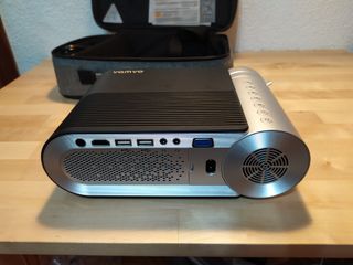 Se vende video proyector Vamvo L4200. Con pocas horas de uso, está muy bien cuidado y sin ni un sólo golpe ni rasguño (puedes comprobarlo por ti mismo). Se vende con práctico maletín. Caractarísticas: - Resolución de 1080P compatible - Tamaño portátil (24,49 x 16,59 x 8,13cm) y peso 1.25 kg. - Sistema de iluminación LED mejorado con brillo de 5500 lúmenes, resolución nativa de 720P, relación de contraste de 2000: 1 y vida útil de la lámpara LED de 50000 horas. - Puertos: HDMI, USB, audio e interfaces AV. - Altavoz incorporado: - Tamaño de proyección de 44-200 pulgadas con una distancia de proyección de 1.5-4.6m