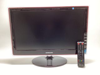 Televisor Samsung antiguo en color negro. - Pantalla LCD. - Diseño clásico.