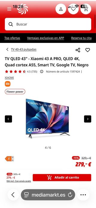 • De media, comprar Televisor 17 pulgadas en Wallapop es un 44% más barato que comprar este tipo de producto nuevo