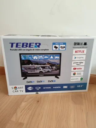 Estado: Nueva a estrenar. Televisor Teber Smart TV de 18.5 pulgadas con pantalla LED y ángulo de visión completo. Disfruta de tus aplicaciones favoritas con Android TV. - Pantalla LED con ángulo de visión completo - Incluye Netflix, Google Play, Prime Video y YouTube - Conectividad Wi-Fi y HDMI - Sintonizadores DVB-T2, DVB-S2 y DVB-C - Puerto USB Se recoge en Madrid o se envía por wallapop. Camper, tele Camper, televisión Camper, tele camping, TV camping, autocaravana, caravana, auto caravana, ...