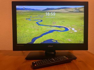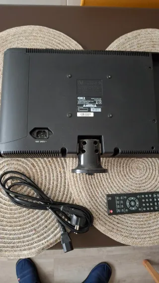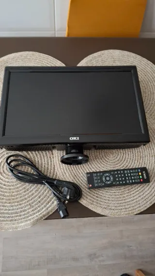 Televisor OKI de 18,5 pulgadas en color negro. Ideal para espacios pequeños o como monitor secundario. Entradas HDMI VGA etc. Incluye mando aunque bastante desgastado por lo que a veces le cuesta reaccionar pero la TV funciona perfectamente como puede verse.