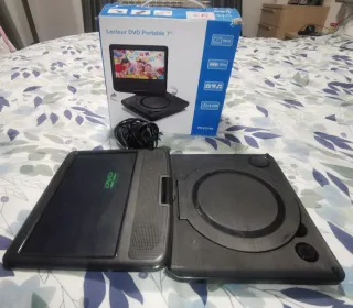 Reproductor de DVD portátil con pantalla de 7 pulgadas. Incluye cargador y si caja. La pantalla gira para todos los lados. - Pantalla de 7 pulgadas. - Diseño compacto y plegable. - Incluye adaptador de corriente.