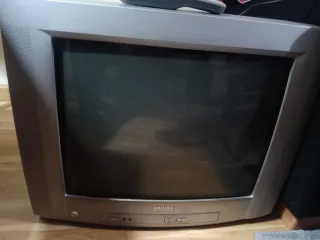 Televisor Philips CRT con RGB nativo. 20 o 21 pulgadas. El VHS tiene una cinta dentro. Perfecto para retro como Amiga 500, Super Nintendo, Mega Drive, GameCube, PS1/PS2, etc. Se ve de locos. Tiene entrada SCART con RGB nativo, que ofrece una calidad de imagen excelente, sin lag y con colores muy nítidos, ideal para juegos clásicos. Formato 4:3 auténtico, imagen suave y sin escalado digital. Un altavoz no va pero sólo con el otro se oye que flipas. ESCUCHO OFERTAS, si buscas un crt bueno y a buen precio, hablamos, me compré una más pequeña y no voy a usar esta. Las fotos no hacen honor a la calidad que tiene. Pepinaco de tele.