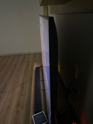 Televisor Haier de 55 pulgadas con resolución 4K UHD. - Pantalla Direct LED. - Diseño moderno en color negro. Haier Direct LED 4K UHD H55K85FUX 55 Pulgadas, Smart TV, Google TV, Dolby Audio, HDR10, Smart Remote Control, Google Assistant, Bluetooth 5.1, DBX TV, HDMI 2.1 x 4, Sin Marcos, 2025 Como se ve en la foto la television esta nueva. Tiene esa raya lateral cuando se enciende.