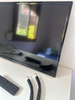 Televisión de 21 pulgadas en buen estado, ideal para piezas. Incluye mando a distancia y patas. - Pantalla con algunas marcas superficiales. - Perfecta para quien busca reparar una TV similar. - Se entrega con cable de alimentación. - Dos soportes de pie incluidos. Se me cayo la tele y no se ve la imagen pero se enciende y se escycha todo estilo radio precio negociable