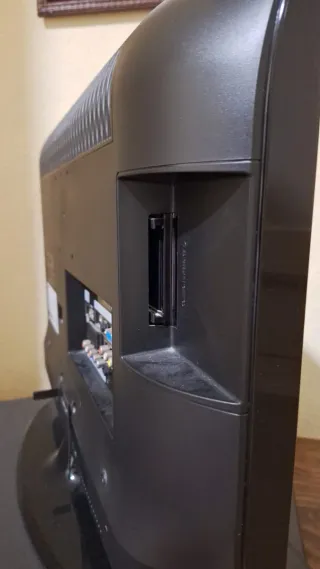 Televisión JVC con reproductor DVD lateral LT-22DD1BU negro en perfecto estado con mando a distancia • Tamaño compacto: pantalla de 22 pulgadas (56 cm) • Reproductor DVD integrado: ubicado en el lateral, con ranura vertical etiquetada. • Puertos visibles: incluye USB, HDMI, Euroconector (SCART), AV, entrada PC (VGA), y ranura CI para TDT de pago . • Resolución WXGA+: 1680 x 1050 pixeles, suficiente para contenido multimedia. • Compatibilidad multimedia: reproduce MP3 y JPEG desde USB o tarjeta SD.
