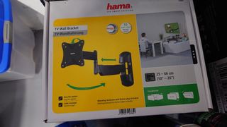 Soporte de pared para TV Hama. - Compatible con pantallas de 25 a 66 cm (10 a 26 pulgadas). - Diseño articulado para ajustar el ángulo de visión.
