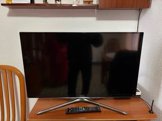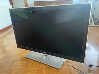 Televisor Samsung con pantalla de 36 pulgadas. - Diseño elegante en color plata y negro. - Soporte metálico en forma de V. - Mando No funciona correctamente. La imagen tarda unos minutos en ser nítida. No necesita TDT, va integrado.
