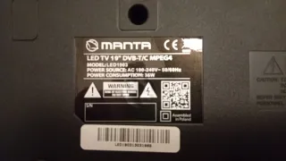 Televisor Manta LED de 19 pulgadas con mando a distancia. - Modelo: LED1903 - Fuente de alimentación: AC 100-240V~ 50/60Hz - Consumo de energía: 36W - Ensamblado en Polonia , es de Mediamarc