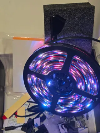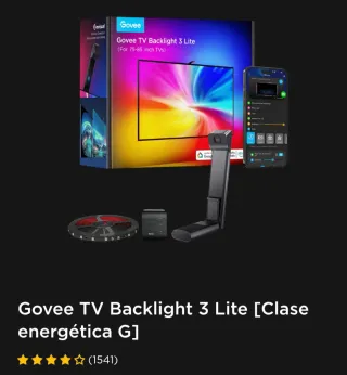 Tira de luces LED Govee para la parte trasera de "SOLO televisores DE 75 A 80 PULGADAS". Diseñada para mejorar la experiencia visual. - Tecnología Blank Screen Detection. - Control mediante app. - Fácil instalación. (Tutotial en Youtube) Especificaciones Modelo H6099 Título del producto Govee TV Backlight 3 Lite Tamaños de TV adecuados 75-85 pulgadas Longitud 5m/16.40ft 4 secciones Colores de luz RGBICW Cámara Cámara Única Cuentas de lámpara 30 LEDs/m TVs ultra delgados Soporte Métodos de control Aplicación, Caja de control, Control por voz Conectividad de la aplicación Wi-Fi de 2.4GHz + Bluetooth Voltaje 12 Voltios Potencia 36 Va