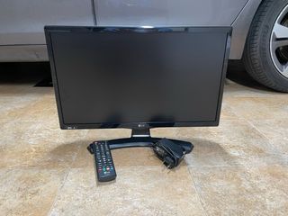 Televisor LG en color negro de 21 pulgadas, ideal para cocinas o espacios pequeños. NO ES SMART TV. Incluye mando a distancia y cable original para conectar a la red. Tecnología IPS LED. Las medidas finales son: 50 cm ancho (pantalla 48*29 cm) y 31 cm alto sin peana. Con ella serian 36 cm de alto.