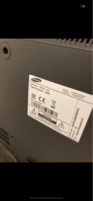 Televisor Samsung de 39 pulgadas. El unico defecto que tiene es que la pantalla tiene un degradado del brillo desde arriba a abajo y no se si es por algo de configuración o no. Incluye doongle para conexión a wifi y mando. El sistema de la tv incluye YouTube, navegador y otras a descargar. - Modelo UE39F5300AW. - Color negro.