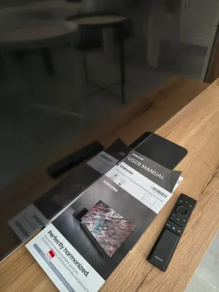 Televisor Samsung QLED de 55 pulgadas con resolución Ultra HD. - Pantalla QLED de 55 pulgadas. - Resolución Ultra HD (4K). - Tecnología QLED para colores vibrantes. Con IA Quantum DOT HDR 10x Sonido OTS Lite Active Voice Amplifier Multipantalla 100 HZ 4 puertos HDMI Peso 21 kgs Está como nueva. Comprada 04.22. Funciona perfectamente, por supuesto. A recoger en Bcn Sant Andreu. Lo siento, no contestaré a ofertas absurdas. Si quieres una TV así y como nueva por 250 EUR, suerte.