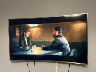 Televisión curva Samsung en color negro, diseñada para montaje en pared. Funciona correctamente. - Pantalla curva. - Preparada para colgar en la pared.