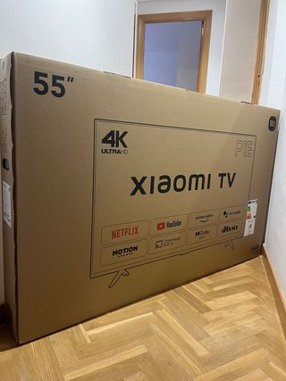 Televisor Xiaomi P1E de 55 pulgadas con resolución 4K Ultra HD. Modelo nuevo, sin abrir. - Pantalla de 55 pulgadas. - Resolución 4K Ultra HD. - Modelo P1E. - Compatible con Netflix, YouTube, Prime Video y Google TV. - Sonido Dolby Audio y DTS-HD. - Preferible entrega en mano. Se puede comprobar precinto en persona