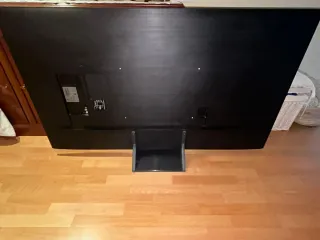 Televisor plano de pantalla negra. - Tamaño de pantalla: 70 cm x 30 cm (aprox. 30-32 pulgadas). - Estado funcional: Funciona perfectamente, sin fallos en la imagen. - Mando a distancia incluido. La base tiene algunos desperfectos estéticos (algunas marcas de uso), pero es totalmente estable y cumple su función.