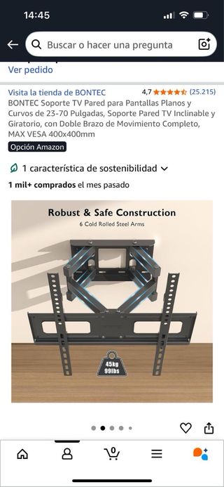 SOPORTES TV HASTA OJO AL ANUNCIO 🔴85 PULGADAS Y MAX 50KG🔴 ENVÍO POR WALLAPOP O VENTA EN MANO EN MADRID CAPITAL Fijos Fijos inclinable Extensible un brazo Doble brazo extensible. SOPORTE TECHO 🔴Soporte fijo hasta 42" a 7€ 🔴Soporte fijo hasta 55" a 8€ 🔴Sop fijo hasta-55" 15€ INCLINABLE 🔴Sop fijo hasta-70" 16€ INCLINABLE 🔴Sop fijo hasta-85" a12€ 🔴Sop techo hasta 55 20€ 🔴Sop.extensible hasta 30"a 10€ 🔴Sop ext. hasta 46"-13€ Max 8kg 🔴Sop ext. hasta 55"-15€ Max 9kg 🔴Sop ext. hasta 55"-18€ Max 15kg 🔴Sop ext. hasta 65"-25€ Max 25kg ENVÍOS POR WALLAPOP O VENTA EN MANO EN MADRID CAPITAL