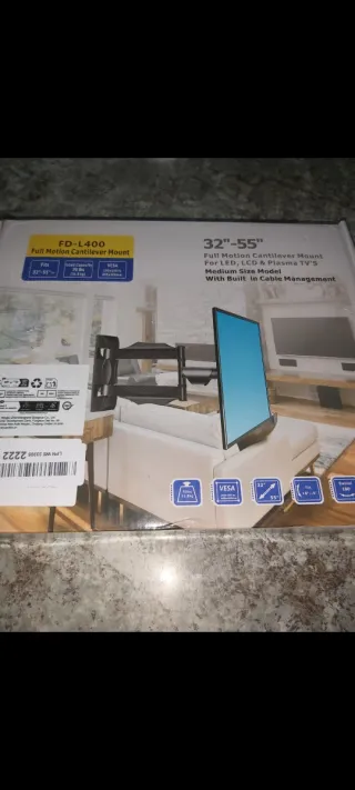 Soporte de pared para TV FD-L400, apto para televisores de 32 a 55 pulgadas. Permite movimiento completo y cuenta con gestión de cables integrada. - Modelo: FD-L400 - Tamaño de TV: 32-55 - Capacidad de carga: 70 lbs (31.8 kg) - Tipo: Soporte de pared con movimiento completo (cantilever) - Características: Gestión de cables integrada - Compatibilidad VESA Entrego en la plaza de Tirso de Molina o glorieta de embajadores. PRECIO NO NEGOCIABLE. PAGO EN EFECTIVO.