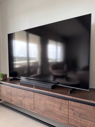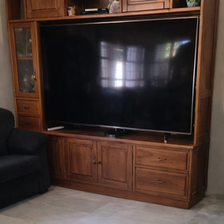 No me interesan cambios, gracias. Vendo televisor Hisense E7 Pro QLED de 75 pulgadas. Muy poco uso, en perfecto estado. La razón de venta es la tercera foto: me mudé y casi no me entra en la pared del salón. Se entrega con patas, tornillos, cable de alimentación y mando a distancia. No dispongo de la caja. Sería para recoger, desmontar y llevársela entre dos personas.