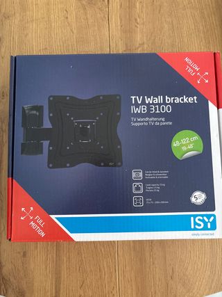 Soporte de pared para TV ISY IWB 3100. - Compatible con pantallas de 48-122 cm (19-48 pulgadas). - Soporta hasta 25 kg de peso. - Permite inclinación y giro. - Compatible con VESA 75x75 - 200x200 mm.