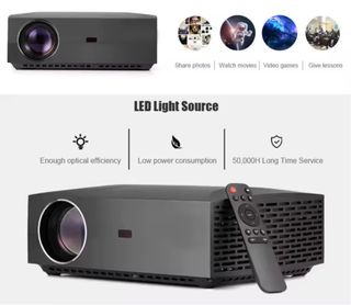 Videoproyector profesional Android,en color gris. Ideal para compartir fotos, ver películas, jugar videojuegos o dar lecciones. 2.Resolución máxima compatible: 1920x1080P 3.Tecnología de visualización: pantalla LCD 4. Lámpara: LED(30,000 horas) 5. Relación de contraste: 2200:1(estática) 10.000:1(Dínámica) 6. Relación de aspecto: 16:9/4:3 7.Relación de lanzamiento: 1,35:1 8. Distancia del proyector: 1,2-6,5 m 9.Tamaño del pantalla en proyección, de 30-250 pulgadas 10.Altavoz: 8ohm, 5W x2 - Suficiente eficiencia óptica. - Bajo consumo de energía. -ANDROID - Larga vida útil de 50.000 horas. -PRODUCTO NUEVO, sellado, sin abrir!