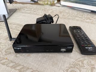 Receptor TDT de la marca Engel, en color negro. Incluye su mando a distancia original y el adaptador de corriente. - Receptor TDT. - Mando a distancia. - Adaptador de corriente.