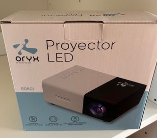 Proyector LED Oryx E0801 en perfecto estado. Es un proyector pequeño y ligero, ideal para llevarlo a cualquier parte. - Incluye mando a distancia. - Soporta videos Full HD. - Conexión para múltiples dispositivos.