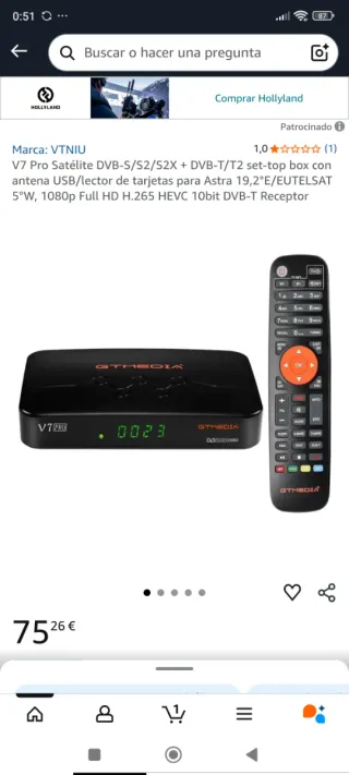 Receptor de satélite GTMedia V7 S2X con capacidad Full HD. Es un decodificador Full HD 1080p compatible con DVB-S/S2/S2X. Soporta AVS+, VCM/ACM/multi-stream/T2MI.