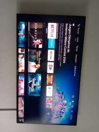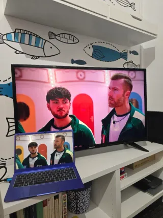 Televisor con un diseño moderno y elegante. - Pantalla grande para una experiencia inmersiva. - Solo entrega personal, soy de Málaga - Marco en color negro. - Base en color azul.