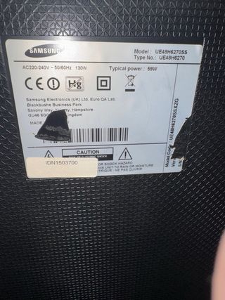 Televisión Samsung Smart TV de 50 pulgadas. Funciona perfectamente y la imagen se ve bien, aunque aparecen algunas rayas horizontales como se ve en las fotos. - Pantalla de 50 pulgadas. - Funcionalidad Smart TV. -Mando a distancia nuevo. Ideal si buscas una TV grande a buen precio y no te importa ese pequeño detalle estético. Se puede ver sin compromiso. Precio negociable. No envio