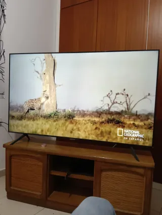Vendo televisor Samsung UE55NU7105 de 55 pulgadas, 4K UHD, en muy buen estado. Comprada en 2019, con uso normal, siempre bien cuidada. Funciona como el primer día. Incluye: ✅ Patas originales (se puede usar sobre mueble) ✅ Compatible con soporte de pared VESA (se puede colgar sin problema) ✅ Mando original incluido Características principales: Resolución 4K UHD (3840×2160) Smart TV (Netflix, YouTube, Prime Video, etc.) HDR Muy buena calidad de imagen para cine y uso diario. Se puede ver y probar sin compromiso. Ideal si buscas una tele grande, 4K y fiable a buen precio. DISPONIBLE A PARTIR DE FEBRERO