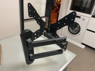 Soporte de pared para TV con doble brazo articulado. Permite ajustar la posición de tu televisor. - Diseño robusto en color negro. - Brazos extensibles para mayor versatilidad. - Placa de montaje con múltiples orificios. - Placas VESA grandes (hasta 400x420)