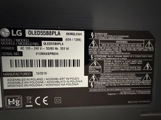Televisor LG OLED de 55 pulgadas, modelo OLED55B8PLA. - Tecnología OLED. - Pantalla de 55 pulgadas. - Diseño elegante. Está impecable y se vende por cambio a una más grande. Se dispone de caja de cartón y protecciones para el transporte si es preciso.