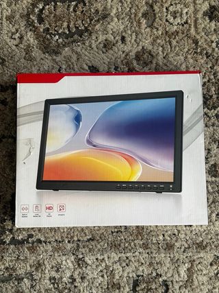 Monitor portátil con pantalla de 15.6 pulgadas y resolución HD. Ideal para usar como TV o monitor secundario. - Altavoces integrados. - Batería integrada. - Pantalla HD. - Compatible con DTV. Accesorios: - Antena para tv - Control remot - Adaptador de corriente - Cableado RCA audio/video Entradas: HDMI UBS Jack 3,5mm Antena TV