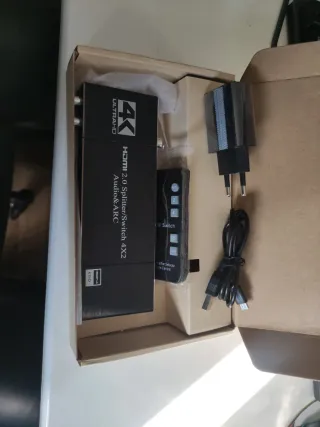 No funciona Divisor y selector HDMI 4x2 compatible con 4K ULTRA HD y Audio & ARC. Incluye fuente de alimentación. - Soporta HDMI 2.0. - Permite seleccionar entre 4 entradas HDMI. - Salida de audio ARC. - Incluye control remoto. No funciona, el mando y el transformador usb sí