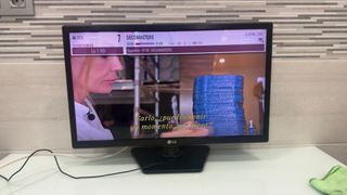 Televisión LG de 24 pulgadas. La televisión tiene muy buena calidad de imagen ,Perfecta para ver cualquier canal en HD,FACIL MANEJO PARA PERSONAS MAYORES,Tamaño perfecto para cocina o habitación o casa del pueblo. NO es Smart tv ,pero si conectas un fire stick de Amazon o Xiaomi por HDMI haces una moderna smart tv por poco dinero . Se puede y se “deben probar todos los aparatos electrónicos que compres en Walapo “ Esta en Barakaldo centro .